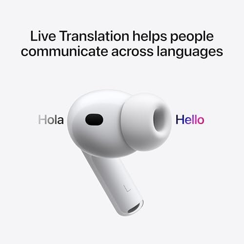 About this item WORLD’S BEST IN-EAR ACTIVE NOISE CANCELLATION — Removes up to 2x more unwanted noise than AirPods Pro 2* so you can stay fully immersed in the moment.* BREAKTHROUGH AUDIO PERFORMANCE — Experience breathtaking, three-dimensional audio with AirPods Pro 3. A new acoustic architecture delivers transformed bass, detailed clarity so you can hear every instrument, and stunningly vivid vocals. HEART RATE SENSING — Built-in heart rate sensing lets you track your heart rate and calories burned for up to 50 different workout types.* With iPhone, you will have access to the Move ring, step count, and the new Workout Buddy,* powered by Apple Intelligence.* LIVE TRANSLATION — Communicate across language barriers using Live Translation,* enabled by Apple Intelligence.* EXTENDED BATTERY LIFE — Get up to 8 hours of listening time with Active Noise Cancellation on a single charge. Or up to 10 hours in Transparency using the Hearing Aid feature.* SECURE IN-EAR FIT — All-new ear tips, now in five sizes, provide a more secure, personalized fit and better audio performance across the board.* HEARING HEALTH — Take a hearing test in the comfort of your home.* Use the Hearing Aid feature, now with automatic Conversation Boost, for clearer communication.* And active Hearing Protection helps prevent exposure to loud environmental noise.*